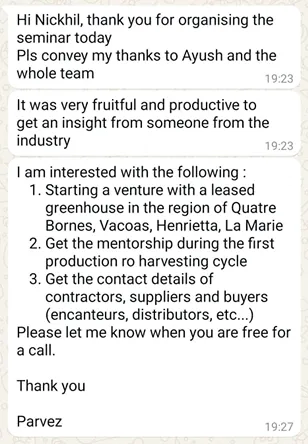 People often refer to practical session as greenhouse visits. The seminar does not consists of a practical session because it is better to follow the seminar first and then visit a greenhouse for ultimate clarity of what strategies was leant in the seminar. Both cannot be achieved in a single day. I advice you to trust me and follow the seminar first.